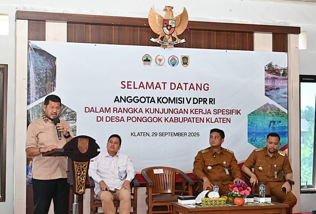 KLATEN,MataParlemen.id — Suasana Balai Desa Ponggok, Kecamatan Polanharjo, Kabupaten Klaten, tampak berbeda pada Senin (29/9/2025). Lantai dua balai desa yang biasanya menjadi ruang pertemuan warga, hari itu penuh dengan tamu penting. Rombongan Komisi V DPR RI hadir dalam kunjungan kerja spesifik, dipimpin langsung Wakil Ketua Komisi V DPR, Roberth Rouw.