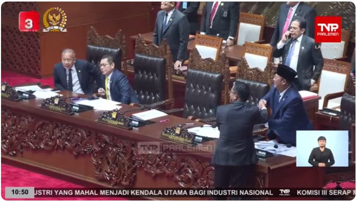Rapat Paripurna pengesahan dipimpin Wakil Ketua DPR Cucun Ahmad Syamsurizal dari PKB, didampingi dua pimpinan DPR lain, yakni Sufmi Dasco Ahmad dan Saan Mustopa.