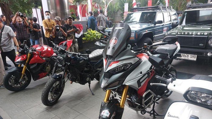 Ada juga mobil BMW, Hyundai Palisade, Mitsubishi Pajero Sport, hingga mobil Jeep. Ada pula Vespa hingga motor sport Ducati yang disita.