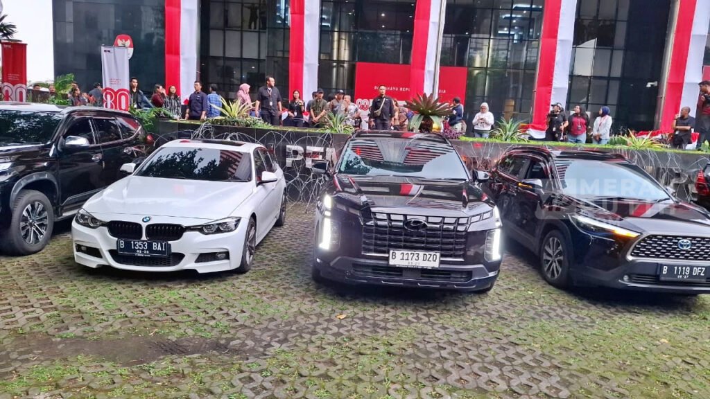 Sebanyak 22 kendaraan telah disita KPK terkait OTT Wamenaker Immanuel Ebenezer atau Noel. Barang bukti yang terdiri atas 15 mobil dan tujuh motor itu dipamerkan di gedung Merah Putih KPK, Jakarta Selatan, Kamis (21/8/2025).