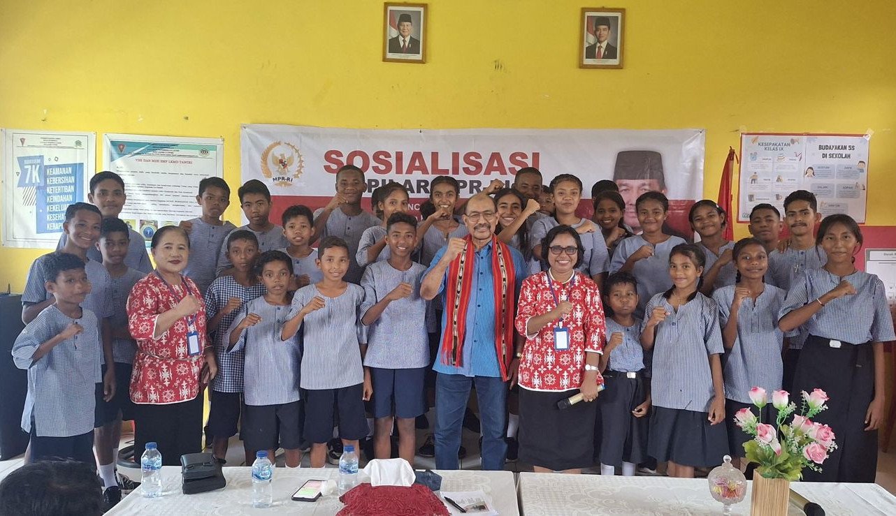 MataParlemen.id-Dalam rangka memperkuat karakter dan menanamkan nilai-nilai kebangsaan di kalangan generasi muda, Anggota DPD/MPR RI, Letjen TNI (Purn) Dr. Nono Sampono, M.Si., memberikan Sosialisasi Empat Pilar MPR RI kepada siswa-siswi SMP LKMD Tawiri, Teluk Ambon, Kota Ambon, pada Kamis (31/07/2025).