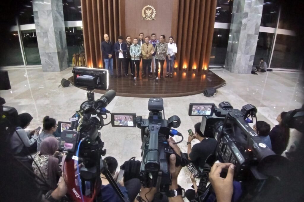 MataParlemen.id, Jakarta — Menteri Hukum Supratman Andi Agtas menyampaikan keterangan pers bersama Wakil Ketua DPR Sufmi Dasco Ahmad, Mensesneg Prasetyo Hadi, dan Ketua Komisi III DPR Habiburokhman di Kompleks Parlemen, Senayan, Jakarta, Kamis (31/7/2025).