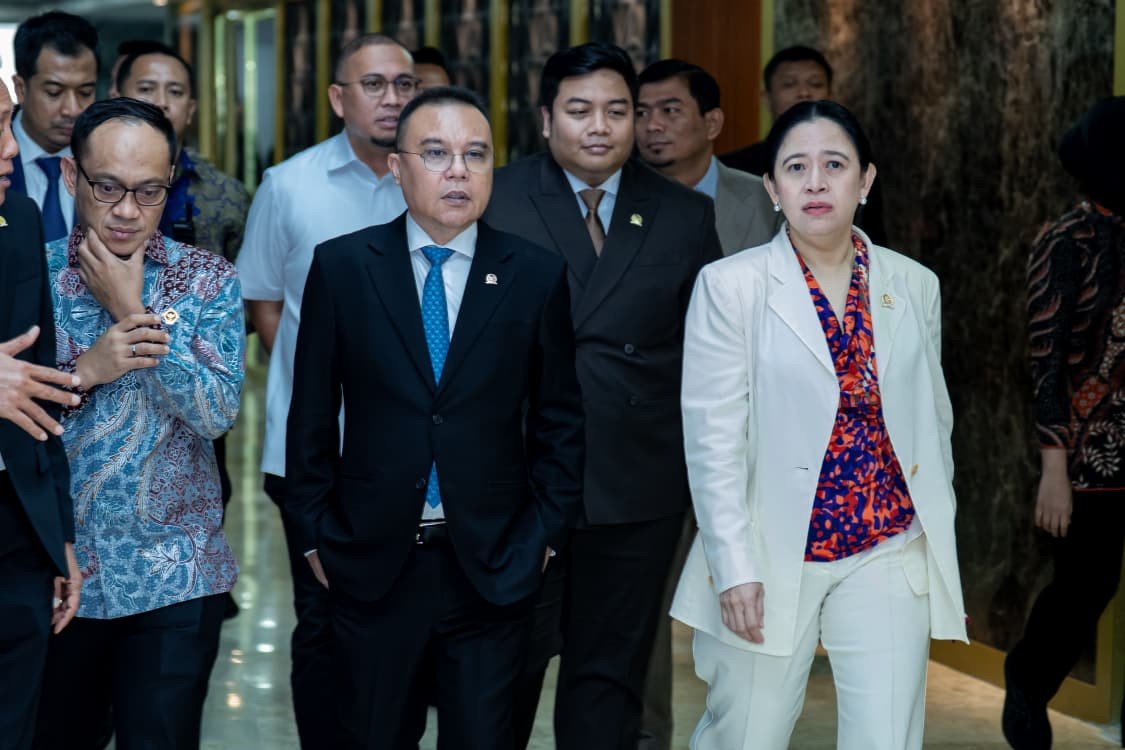 Pengesahan dipimpin Ketua DPR RI Puan Maharani di Gedung Nusantara II, Kompleks Parlemen, Senayan, Jakarta, Selasa (21/4/2026). Puan didampingi oleh Wakil Ketua DPR RI Wakil Ketua DPR Cucun Ahmad Syamsurijal, Sufmi Dasco Ahmad, dan Saan Mustopa.
