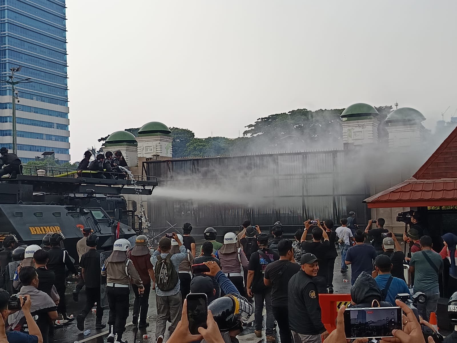 Situasi mulai memanas ketika mahasiswa berusaha menerobos gerbang DPR. Para mahasiswa terus merangsek berikade aparat kepolisian. Saat itulah polisi yang berjaga menembakkan meriam air (water canon) untuk membubarkan dan memukul mundur mahasiswa.
